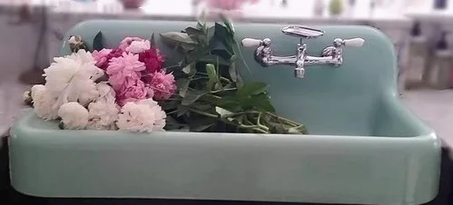 It all began with the love for this green sink. My first renovation in 2008 was an old 1892 farmhouse that had many years of neglect with huge potential. The home had tons of charm as well as many original untouched features. I wanted to incorporate vintage pieces that could tie in with updated cabinetry. While flipping through magazines, I came across an amazing Mint Green Kohler apron sink! I knew I had to have it, but how?! I searched every salvage yard in driving distance and finally came across a Mint Green Kohler sink!!!! I drove three and a half hours to get this beauty. It was love at first sight, and so the the love for the green sink began…